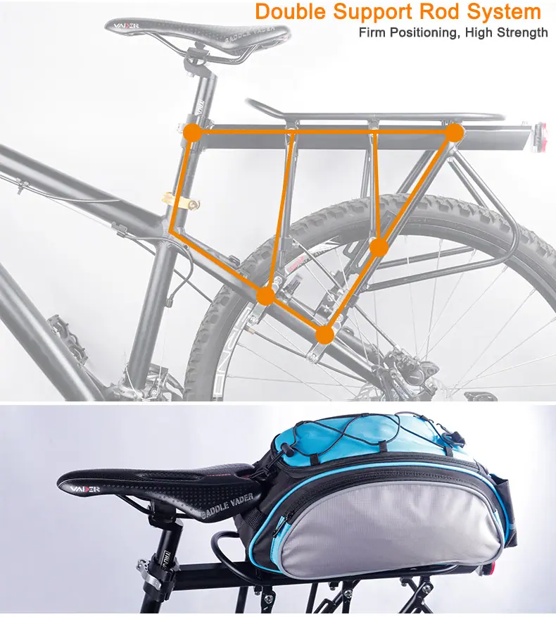 This carrier has load capacity of 100KGs Max. But giving priority to cycling safety, please take care to check the load capacity of your existing hub, quick release rod and frames before you load the capacity.
